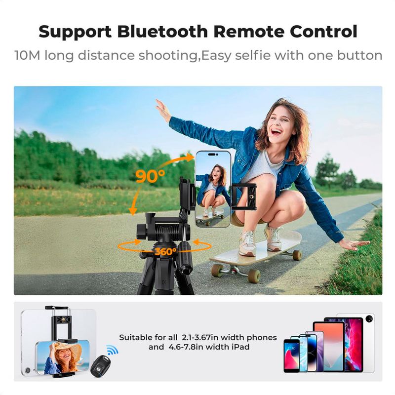* [Obturador remoto inalámbrico]: el trípode de la cámara incluye un control remoto bluetooth compacto que le permite tomar fotos y videos desde hasta 39 pies de distancia, ya sea una foto familiar, una selfie, una grabación de video, una transmisión en vivo, un video blog o más.