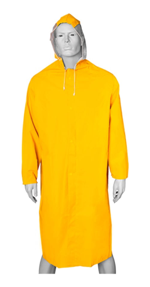 Abrigo de PVC amarillo, abrigo impermeable PVC de alta resistencia para protección de lluvia, trabajos a intemperie, trabajos en zonas húmedas, salpicaduras de químicos en bajas concentraciones.