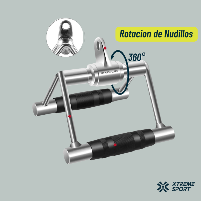 <li>Entrenamientos múltiples: Ideal para ejercicios de remo sentado para desarrollar la espalda, los hombros, los antebrazos, los tríceps y los bíceps. El diseño Doble D te permite ejercitar ambos brazos a la vez<br> </li>