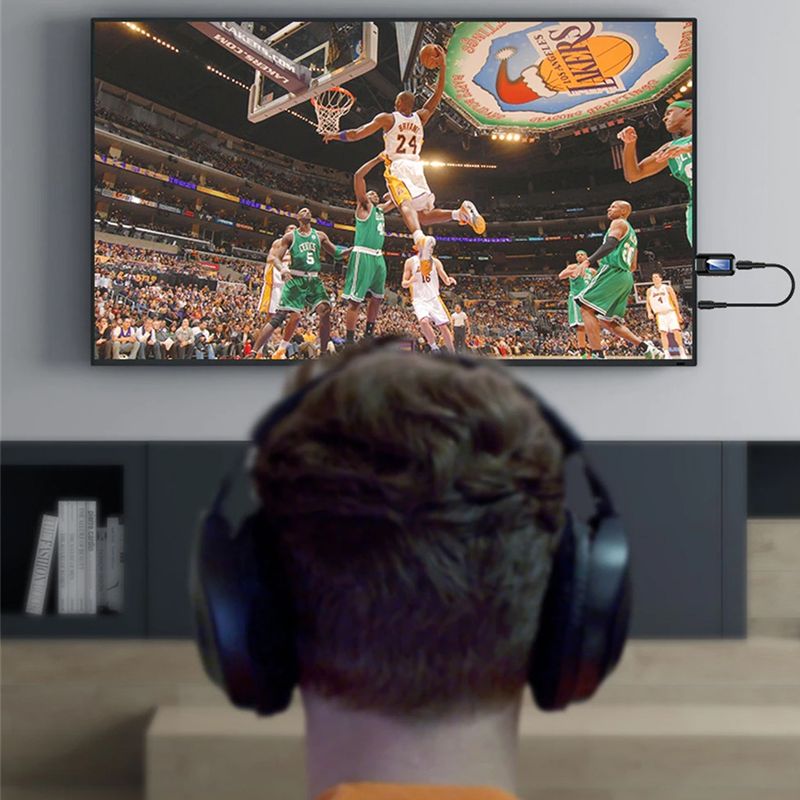 6. Función inalámbrica: ¿Quieres ver fútbol/béisbol/Boxeo/Golf/juego de NBA por la noche sin despertar a nadie? Esta es una gran elección para ti. Función de transmisor Bluetooth transmite audio de forma inalámbrica a altavoces o auriculares Bluetooth desde tu TV o dispositivos multimedia antiguos como reproductores de CD portátiles que carecen de Bluetooth incorporado.