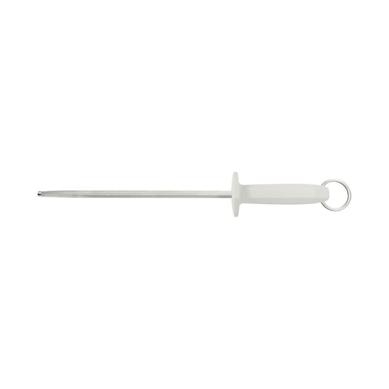 El eje está fabricado en acero carbono de alta dureza (62 HRc), lo que garantiza un afilado eficiente y prolongada vida útil del producto. Su superficie estriada permite restaurar el filo de tus cuchillos de manera uniforme, sin dañar la hoja.