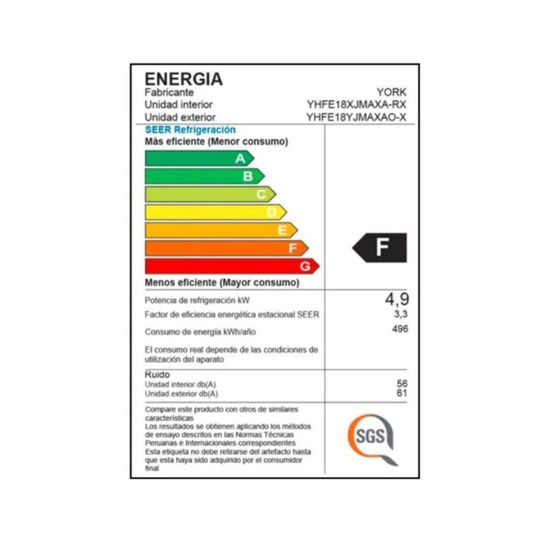 Aire Acondicionado York Split Pared De 18,000 Btu/H On/Off Frío Solo