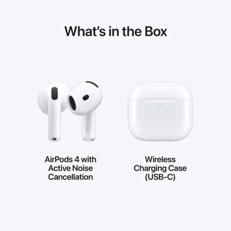 Controlador de alta excursión diseñado por Apple Amplificador exclusivo con alto rango dinámico Cancelación Activa de Ruido Audio Adaptativo4 Modo Ambiente Reconocimiento de Conversación4 Aislamiento de Voz2 Audio Espacial personalizado con seguimiento dinámico de la cabeza3 Ecualización Adaptativa Ecualización de presión mediante un sistema de ventilación Sensores: Dos micrófonos con tecnología beamforming Micrófono orientado hacia adentro Sensor óptico (audífonos internos) Acelerómetro con detección de movimiento Acelerómetro con detección de voz Sensor de fuerza Chip Chip H2 para audífonos Controles Presiona una vez para reproducir o pausar contenido multimedia Presiona una vez para contestar una llamada o silenciar o activar el micrófono Presiona dos veces para finalizar una llamada Presiona dos veces para avanzar Presiona tres veces para retroceder Resistentes al polvo, al agua y al sudor (IP54) Estuche de carga: Funciona con el conector USB‑C, el cargador del Apple Watch o cargadores con certificación Qi Incluye una bocina para poder usar la app Encontrar con vista de proximidad AirPods 4 con Cancelación Activa de Ruido y estuche de carga (USB‑C) Hasta 20 horas de audio con la Cancelación Activa de Ruido activada16 Hasta 30 horas de audio con el control de ruido desactivado16 Hasta 20 horas de conversación17 5 minutos en el estuche te dan aproximadamente 1 hora de audio18 o aproximadamente 45 minutos de conversación Conectividad Tecnología inalámbrica Bluetooth 5.3 En la caja: AirPods 4 con Cancelación Activa de Ruido Estuche de carga (USB‑C) con bocina Requisitos del sistema Modelos de iPhone con la última versión de iOS Modelos de iPad con la última versión de iPadOS Modelos de Apple Watch con la última versión de watchOS Modelos de Mac con la última versión de macOS Modelos de Apple TV con la última versión de tvOS Los AirPods se pueden usar como audífonos inalámbricos Bluetooth con dispositivos Apple que tengan versiones anteriores de software y con dispositivos que no sean de la marca Apple, pero la funcionalidad puede ser limitada. Documentación