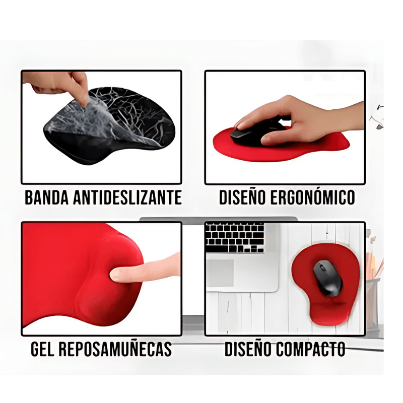 Nuevo y cómodo mouse tipo pad para escritorio con diseño ergonómico, cuenta con pegamento en la base (está protegida por una lámina que puede retirarse), esto ayuda a mantener firme el pad en el escritorio. Alfombrilla ergonómica diseñada para usar con el mouse, el gel se adapta perfectamente a la forma de la muñeca durante el uso. Observaciones adicionales: Las fotografías y descripción del producto son referenciales. Producto Sujeto a Stock.