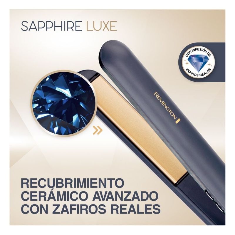 La plancha alisadora Remington Sapphire Luxe combina elegancia y tecnología avanzada para ofrecerte un peinado impecable y sin esfuerzo. Su diseño sofisticado en azul marino con detalles en color champán no solo aporta estilo, sino que también integra características de alto rendimiento para el cuidado de tu cabello.