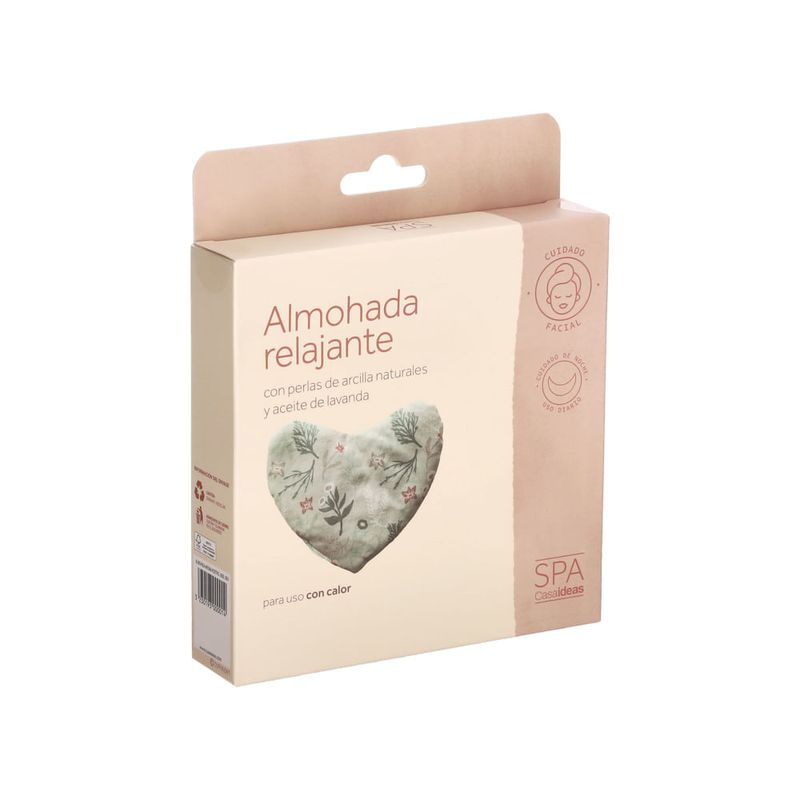Almohada relajante de rostro con perlas de arcilla natural y aroma a lavanda. Su forma se adapta suavemente a la frente y los ojos, y las perlas retienen la humedad del aire que se libera al calentarla en el microondas. El calor húmedo, relajante y el aroma a lavanda se combinan para aliviar naturalmente los dolores y la tensión causada por el estrés. Ideal para ayudar a aliviar el dolor de cabeza, la migraña y el dolor sinusal. Ideal para aliviar la hinchazón, la tensión y el cansancio ocular.