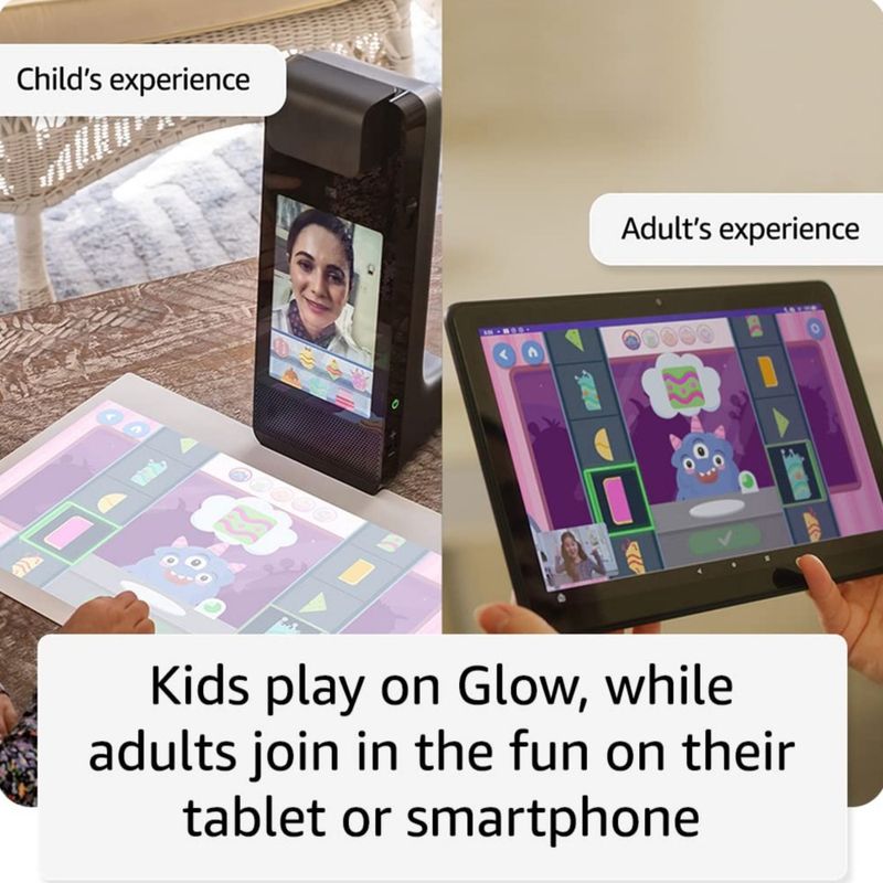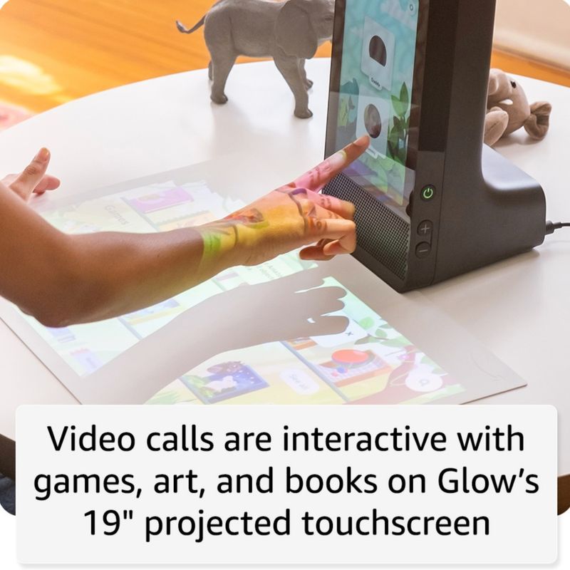 Amazon glow es un sistema de videollamadas y entretenimiento interactivo diseñado para que los niños se vinculen con la familia de forma remota con más facilidad.