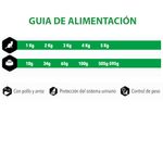 Composición: Carne deshidratada 40% (pollo 14%), trigo, cebada, grasa de pollo (Fuente de ac. grasos Ω-6), guisantes, arroz, fibra insoluble (celulosa natural), fibra de guisante, vaina de algarroba, pulpa de remolacha, vitaminas y minerales, levadura y extracto de levadura-Saccharomyces cerevisiae (Fuente de mananooligosacáridos – Mos y β-glucanos), hidrolizado de proteína de pollo, aceite de salmón (Fuente de ac. grasos Ω-3-EPA y DHA), hígado de pollo hidrolizado, Inulina (Fibra soluble de achicoria, fuente fosfooligosacáridos – Fos), yucca.