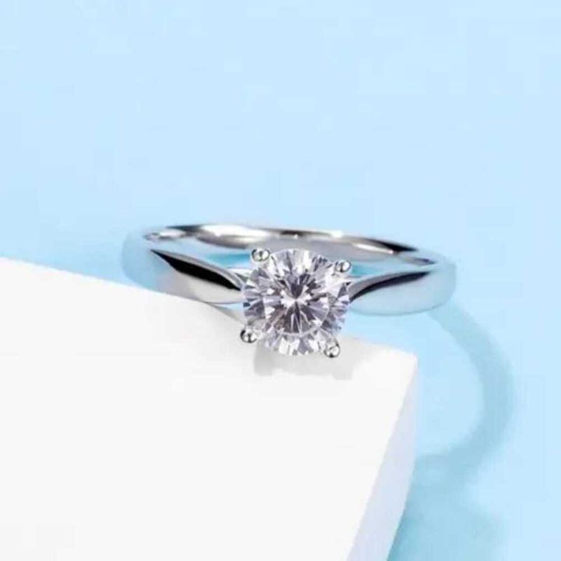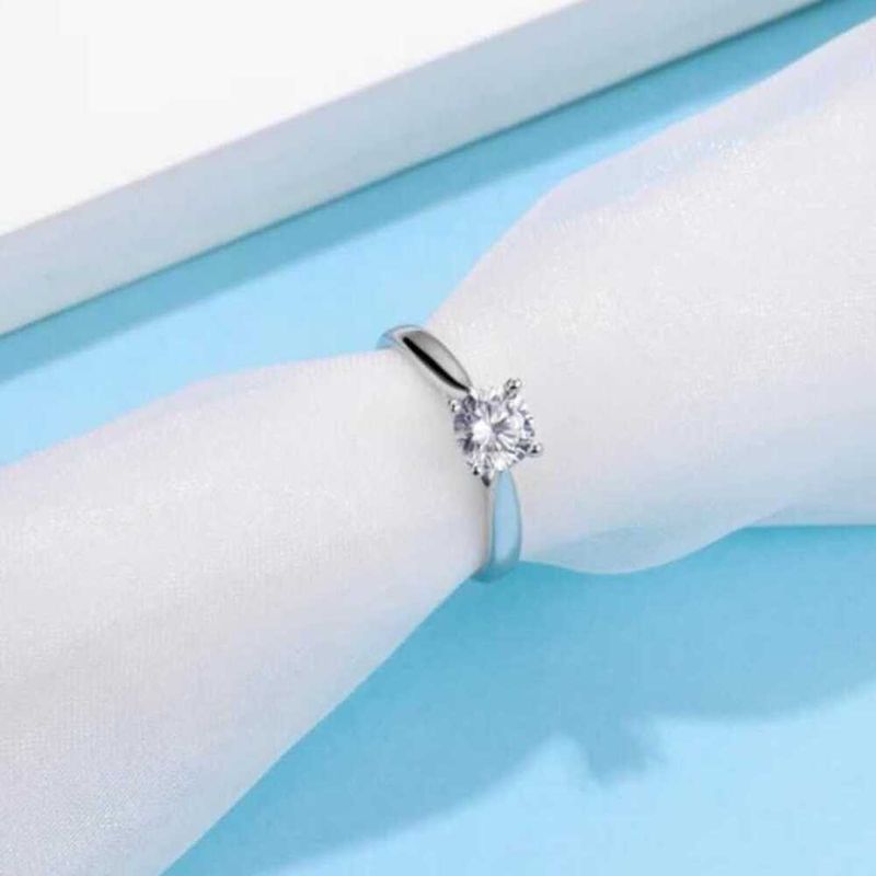 Anillo de compromiso de Plata S925 bañado en Oro 18k. Sortija con piedra de Zirconia de alta calidad - Gema de Zircón AAA, en color blanco. Accesorios de joyería nupcial.