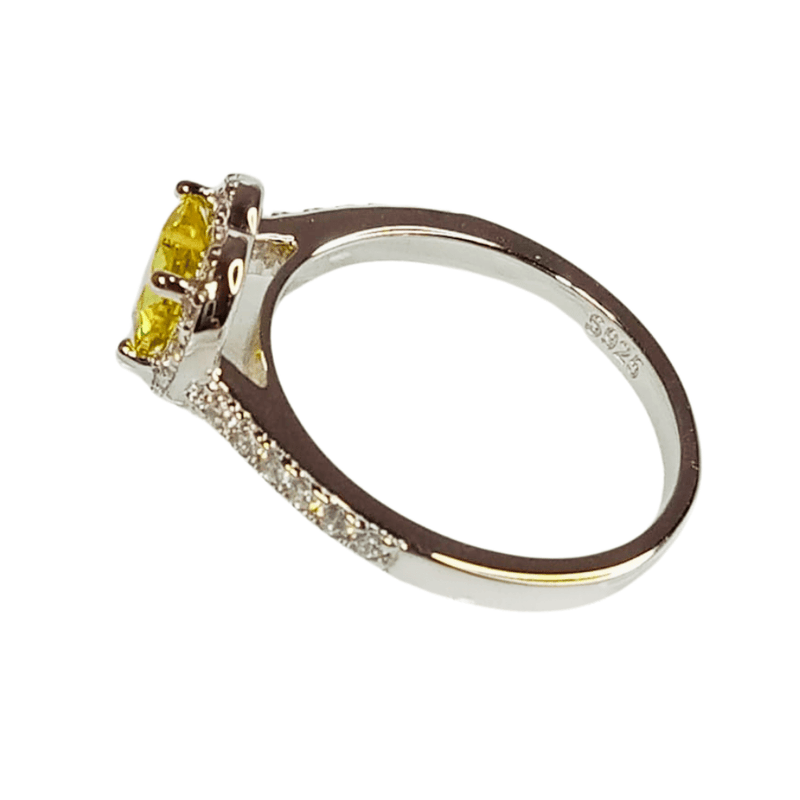 El Anillo Modelo 614 de AFRODITA es una obra maestra de elegancia y sofisticación. Fabricado en plata maciza 925, bañado en oro blanco 18K. Este anillo combina la durabilidad con un brillo exquisito que solo la plata de alta calidad puede ofrecer. La pieza central es un deslumbrante circón cúbico de 1.2 quilates en un delicado color amarillo Ámbar, tallado en forma de corazón, que simboliza energía, vitalidad y claridad mental.