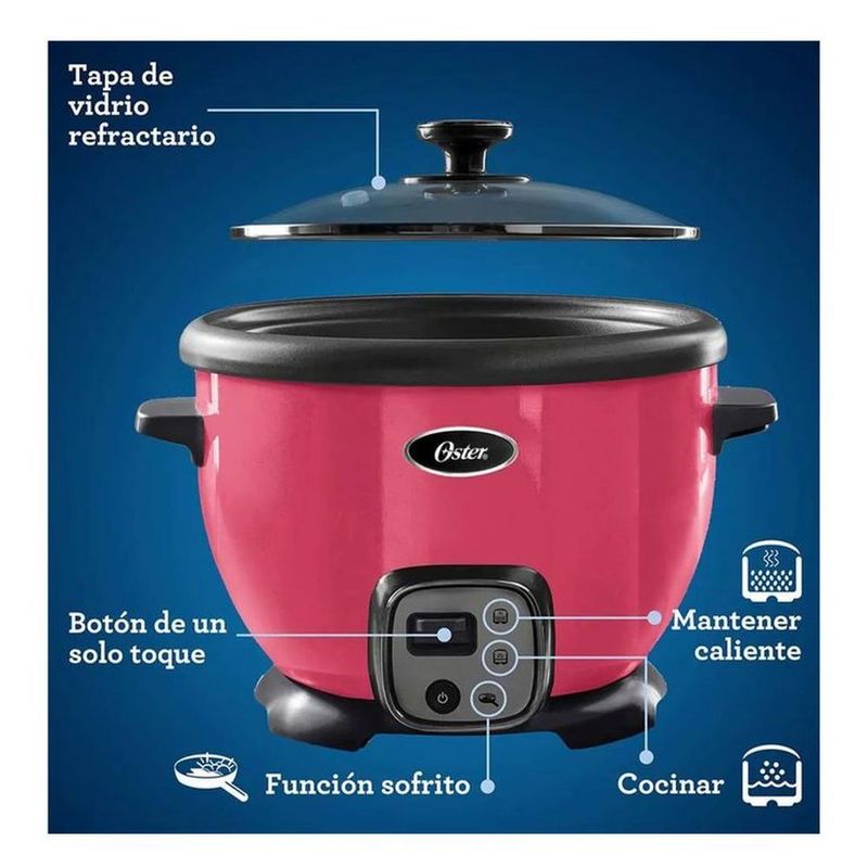 ¿Quién puede resistirse a esta arrocera multiusos Oster® con función de sofrito? Esta práctica arrocera te permite sofreír tus alimentos antes de preparar el arroz y otras recetas a la vez que embellece tu cocina. Además, contiene una olla interior extraíble con recubrimiento antiadherente. Preparar tus comidas favoritas ahora es más fácil y saludable. ¡Disfruta de su nuevo diseño y vibrante color ideal para embellecer tu cocina!