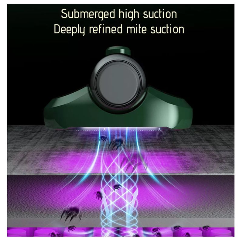 Potente Succión: Motor de buena potencia que asegura una succión fuerte y efectiva, eliminando profundamente los ácaros del polvo de colchones, sofás, alfombras y más.