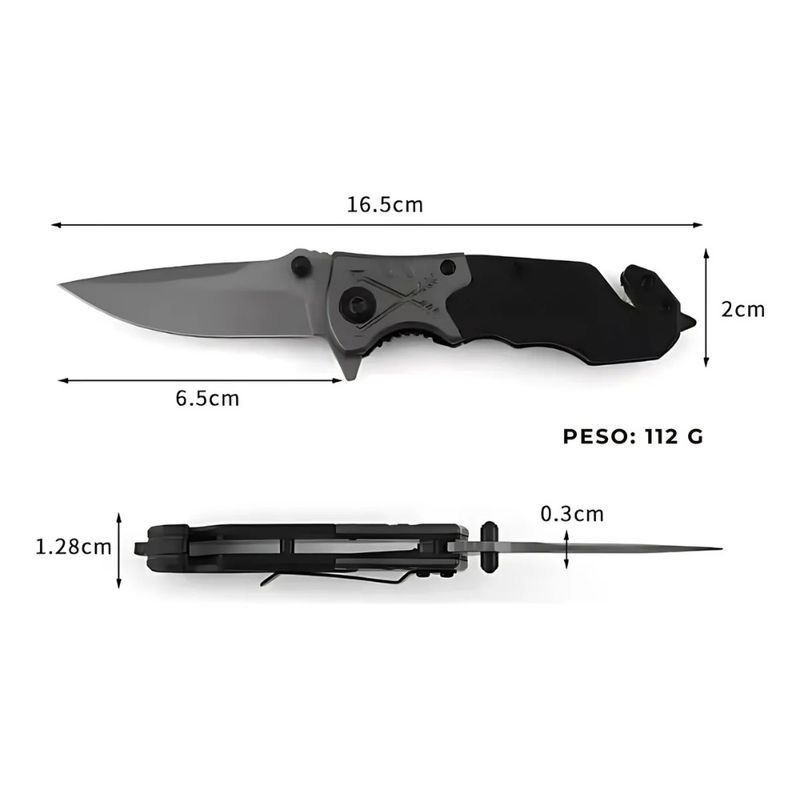 El mango, fabricado en acero inoxidable y ABS, proporciona un agarre seguro y cómodo, mientras que su diseño semi-automático permite una apertura rápida y sencilla. Con un largo total de 16,5 cm y un espesor de 0,3 cm en la hoja, esta navaja es compacta y robusta, ideal para tareas multifuncionales y defensa personal.