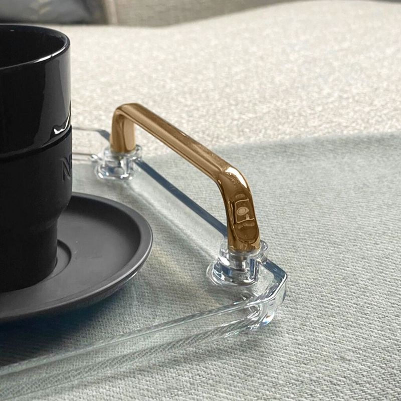 Esta bandeja llevará ese glamour clásico a cualquier espacio de tu hogar. Es el complemento perfecto para cualquier decoración. Puedes usarla para organizar y presentar tus perfumes, cosméticos, joyas u otros objetos que te interesen. Además, puede utilizarse para servir cocktails, aperitivos, postres o como centro de mesa. Material: acrílico resistente con el toque de asas doradas. Medidas: 33 x 21 cm