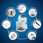 Exclusivo movimiento giratorio que permite mover la batidora de lado a lado para obtener meclas rápidas y uniformes