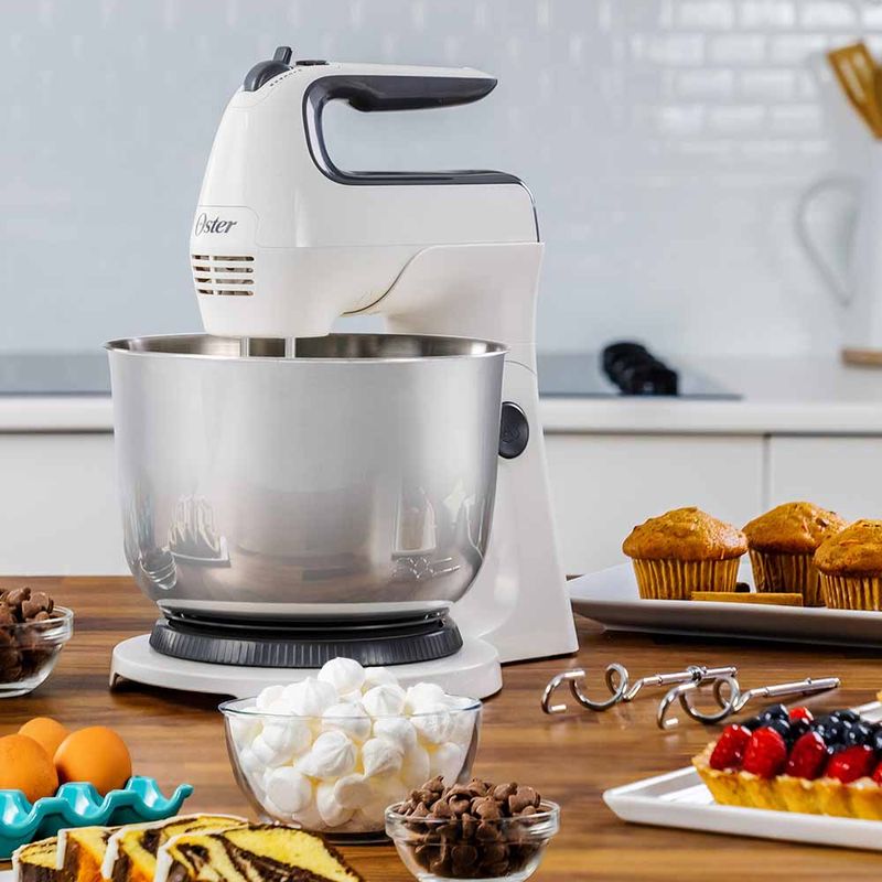 Esta práctica batidora de mano y pedestal Oster con potencia de 250 watts, acción giratoria única, mezcla 2 veces más rápido y de manera uniforme. Permite preparar todo tipo de mezclas, desde gruesas masas de galletas hasta delicados merengues. El diseño ergonómico de su mango, te brinda máxima comodidad para que prepares deliciosas comidas y postres con facilidad. También cuenta con 6 velocidades mezclar, batir, amasar y una función de Turbo que provee potencia adicional al toque de un botón podra encender/apagar, seleccionar velocidad y expulsar batidores o ganchos amasadores. Y su tazón de Acero Inoxidable no sólo es conveniente sino atractivo a la vez. Para batir o amasar, esta batidora te hará la tarea mucho más sencilla.