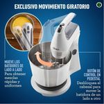 - Exclusivo movimiento giratorio que permite mover la batidora de lado a lado para obtener meclas rápidas y uniformes