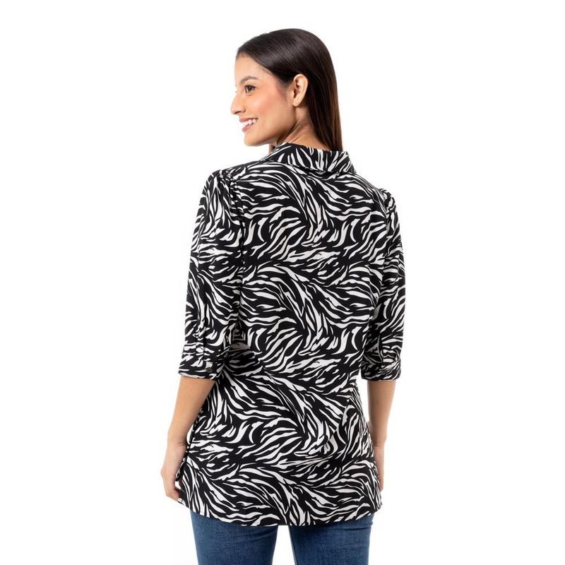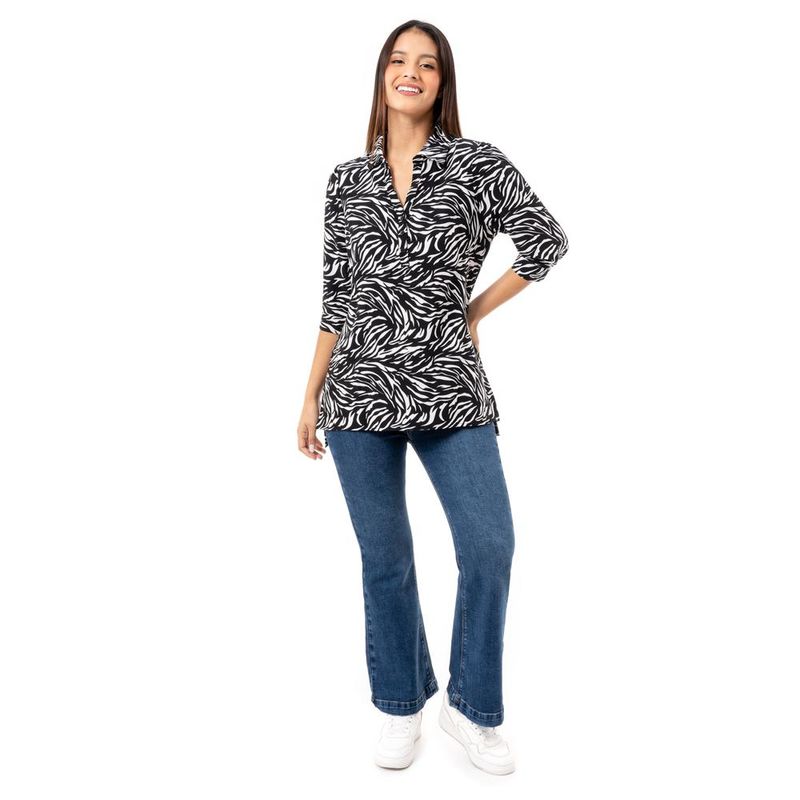 Diseñado para mujeres que buscan la frescura y la elegancia en una sola prenda. Esta blusa ligera está confeccionada en material suave y transpirable, ideal para climas cálidos. Su corte frontal estiliza la figura femenina, aportando un ajuste favorecedor. El diseño clásico permite combinarla fácilmente tanto en atuendos formales como en looks casuales, siendo una pieza versátil y esencial para toda temporada.