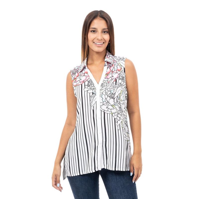 Diseñado para mujeres que buscan la frescura y la elegancia en una sola prenda. Esta blusa ligera está confeccionada en material suave y transpirable, ideal para climas cálidos. Su corte frontal estiliza la figura femenina, aportando un ajuste favorecedor. El diseño clásico permite combinarla fácilmente tanto en atuendos formales como en looks casuales, siendo una pieza versátil y esencial para toda temporada.