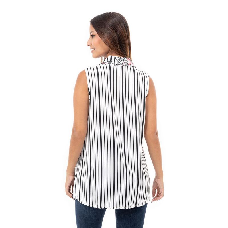 Diseñado para mujeres que buscan la frescura y la elegancia en una sola prenda. Esta blusa ligera está confeccionada en material suave y transpirable, ideal para climas cálidos. Su corte frontal estiliza la figura femenina, aportando un ajuste favorecedor. El diseño clásico permite combinarla fácilmente tanto en atuendos formales como en looks casuales, siendo una pieza versátil y esencial para toda temporada.