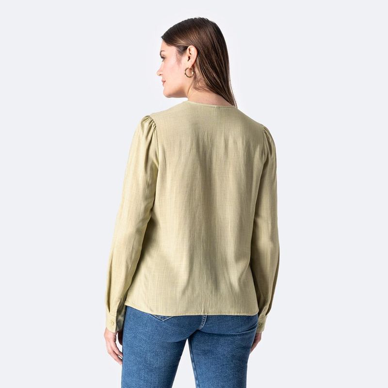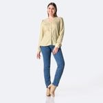 Diseñado para mujeres que buscan la frescura y la elegancia en una sola prenda. Esta blusa ligera está confeccionada en material suave y transpirable, ideal para climas cálidos. Su corte frontal estiliza la figura femenina, aportando un ajuste favorecedor. El diseño clásico permite combinarla fácilmente tanto en atuendos formales como en looks casuales, siendo una pieza versátil y esencial para toda temporada.