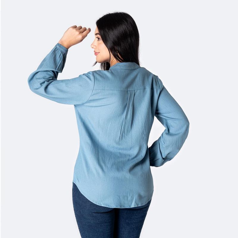 Diseñado para mujeres que buscan la frescura y la elegancia en una sola prenda. Esta blusa ligera está confeccionada en material suave y transpirable, ideal para climas cálidos. Su corte frontal estiliza la figura femenina, aportando un ajuste favorecedor. El diseño clásico permite combinarla fácilmente tanto en atuendos formales como en looks casuales, siendo una pieza versátil y esencial para toda temporada.