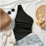 Este top asimétrico está confeccionado en tela waffer con textura de ondas, ofreciendo un estilo moderno y distintivo. Su diseño ajustado realza la figura, mientras que los pliegues suaves aportan un toque elegante y casual a la vez. Ideal para combinar con jeans, faldas o shorts para un look fresco y versátil.