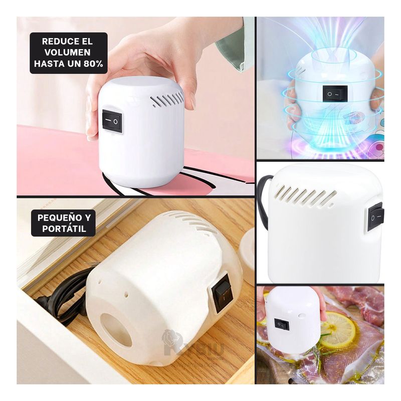 La bomba de succión para bolsas al vacío eléctrica es una solución rápida y eficiente para el almacenamiento de alimentos y otros artículos. Este compresor eléctrico en blanco ofrece una operación automatizada que facilita el proceso de eliminación de aire sin esfuerzo manual. Ideal para quienes buscan comodidad y velocidad, su diseño compacto permite un almacenamiento sencillo. La bomba asegura un sellado hermético, prolongando la frescura y calidad de los contenidos. Su color blanco y acabados modernos hacen que se integre perfectamente en cualquier espacio. Una herramienta indispensable para optimizar el almacenamiento y mantener tus pertenencias organizadas. Observaciones adicionales: las fotografías y descripción del producto son referenciales. Producto sujeto a stock de colores. Garantía: 7 días por daños de fábrica. El Modelo de los(el) regalo(s) está sujeto a disponibilidad de stock y colores.