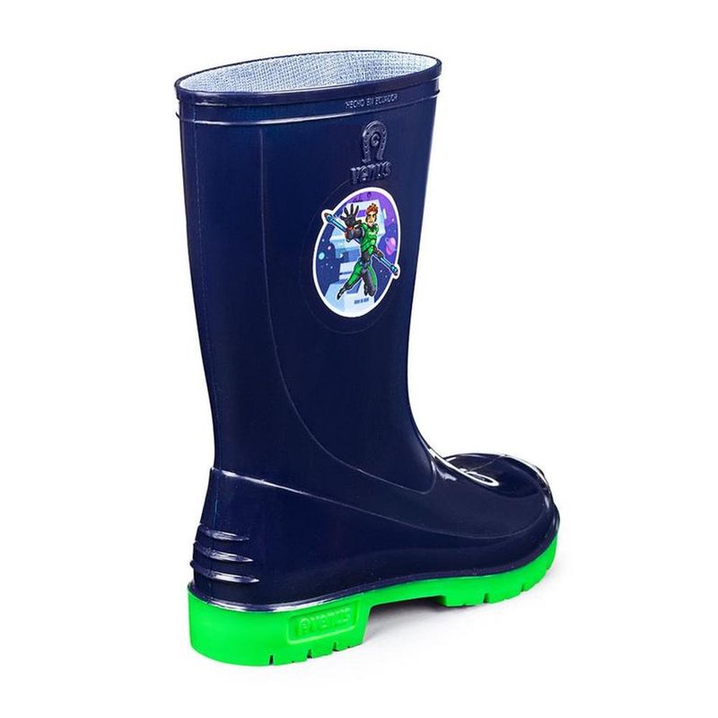 Bota infantil 100% de PVC color de moda y sticker de tendencia,a su vez con mayor reforzamiento en la puntera y talon para largas horas de juego.