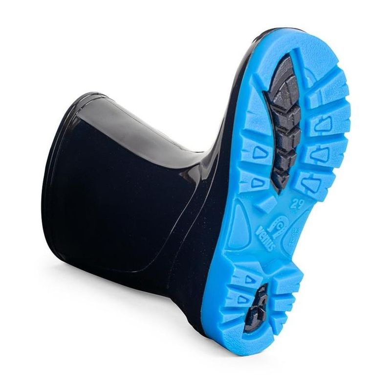 Bota infantil 100% de PVC color de moda y sticker de tendencia,a su vez con mayor reforzamiento en la puntera y talon para largas horas de juego.