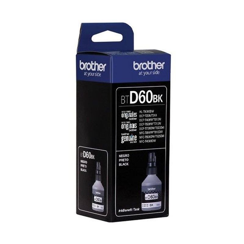 Tinta Brother BTD60BK de color Negro original con rendimiento de 6500 PAGINAS, Máxima calidad en cada imagen.