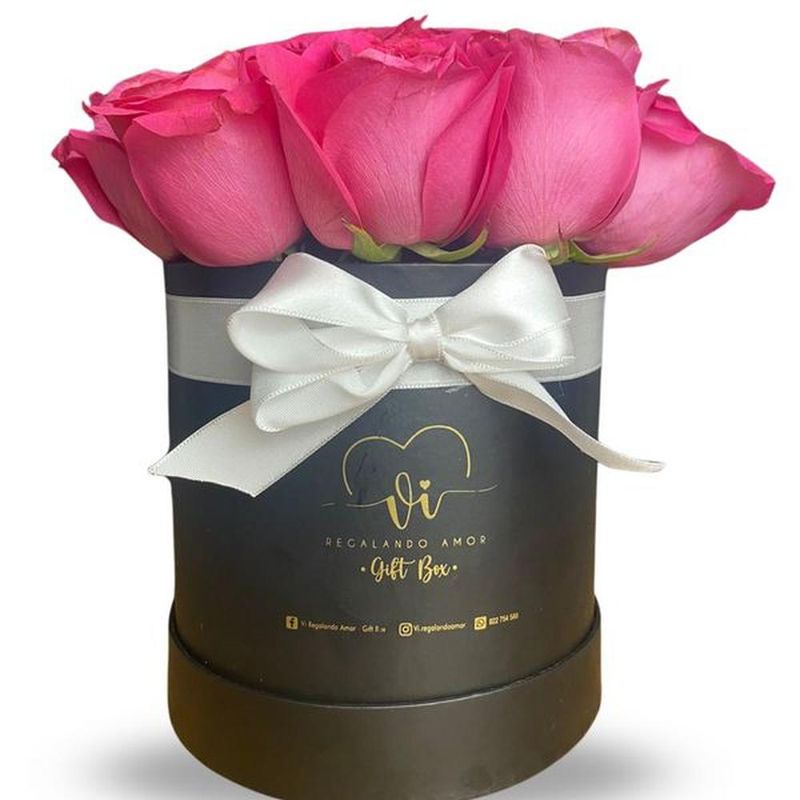 El Box Clásico de Vi Regalando Amor con 12 rosas fucsias es una explosión de energía y encanto