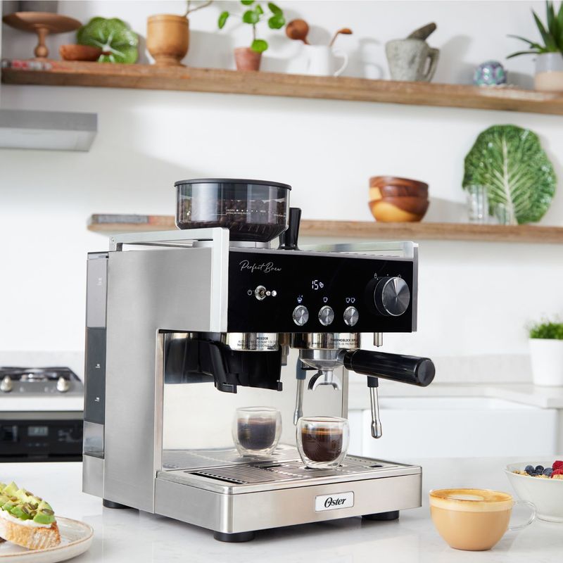 Cafetera Oster® para Espresso Perfect Brew Máxima BVSTEM7400 con Molinillo integrado y accesorios