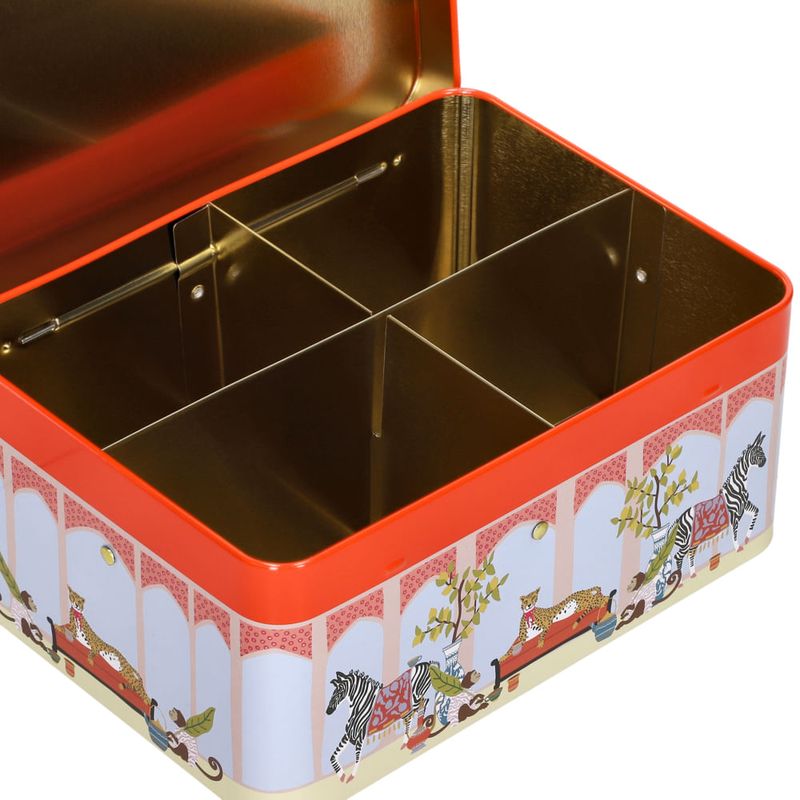 Caja de metal hojalata con diseño para guardar bolsas de té