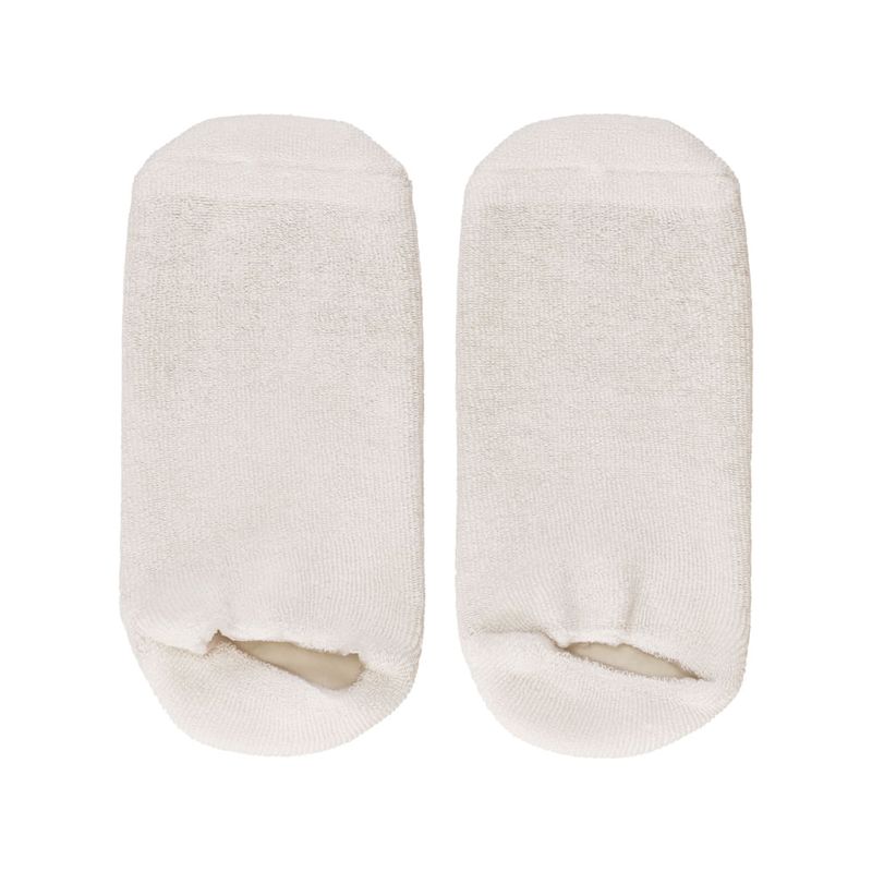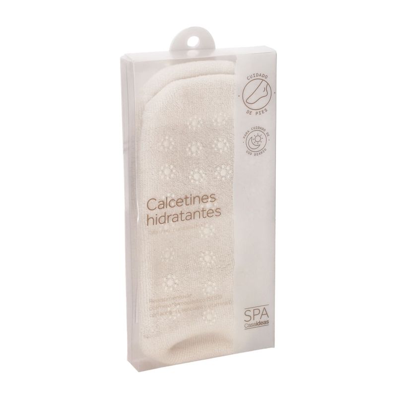 Calcetines de spa con revestimiento de polímero termoplástico (SEBS) y con aceites esenciales y vitamina E para tratamiento de hidratación. Ayuda a hidratar de una manera fácil y cómoda tus pies con estos suaves calcetines. Su composición ayuda a que la absorción de los nutrientes de las cremas o lociones que te apliques sea más efectiva.