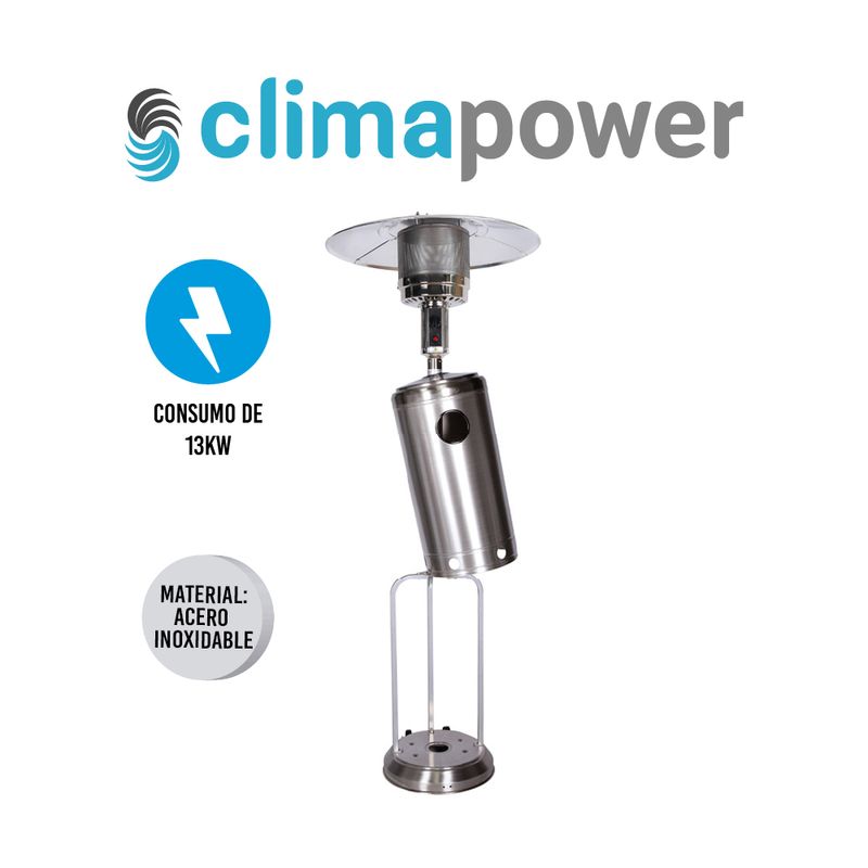 Con una potencia máxima de 13KW y un alcance de hasta 26 m², garantiza un calor uniforme y eficiente. Su estructura de acero inoxidable le brinda durabilidad y resistencia a la intemperie, mientras que su quemador de acero y bronce asegura un rendimiento confiable.