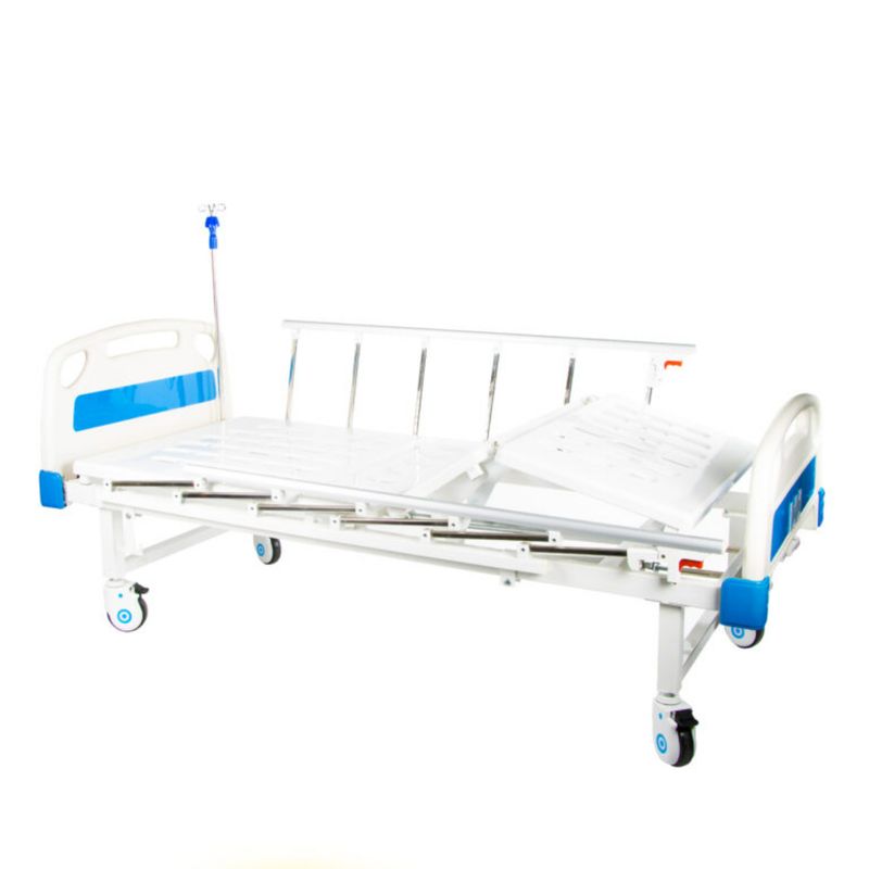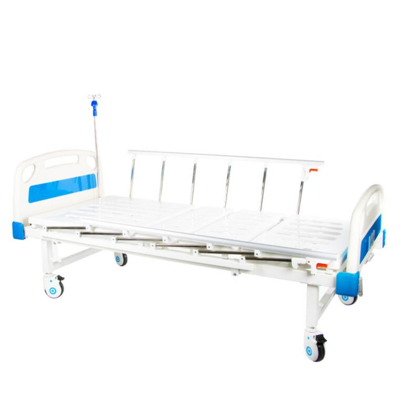 Catre clínico manual de dos posiciones con cabecera y piecera lavables y fácilmente desmontables.