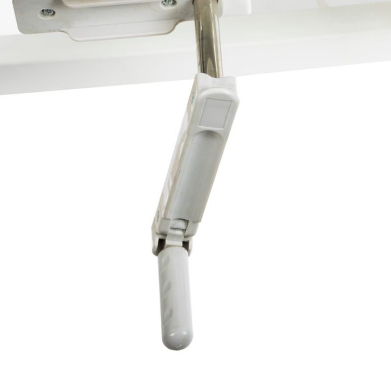 Barandas de aluminio abatibles, ruedas premium silenciosas de 5” para un fácil manejo y dos manivelas para regular cómodamente la inclinación del respaldo y de las piernas.