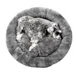Elaborado en tela tipo peluche pelo corto. Tela Hipoalergénico. Colores: Marrón, Gris, Guinda, Negro, Azul y Verde. Base en tela hidrófuga. Relleno con Napa Siliconada. Cojín central removible. Cuenta con sierres para poder extraer la Napa. Para perros y gatos. Fácil de Lavar. Tallas: M-L-XL. Dimensiones: Talla M, Diámetro 60cm. Alto: 16cmTalla L, Diámetro 70cm. Alto: 16cm. Talla XL, Diámetro 80cm, Alto: 16cm.
