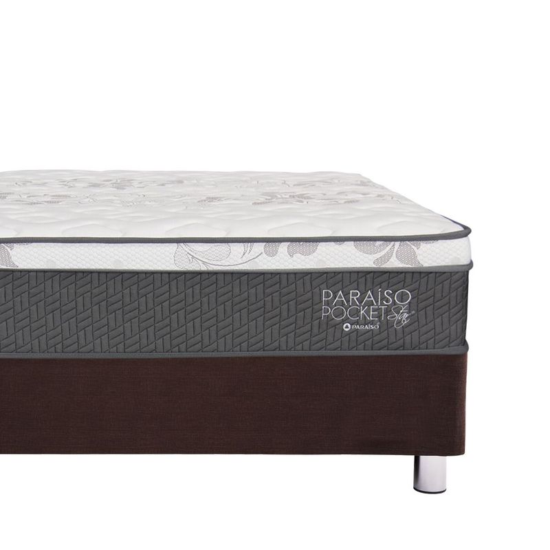La Cama Paraíso Pocket Star King Chocolate + 2 almohadas + protector. Elaborado con fina tela tejido de punto e interior de espuma de formulación especial que ofrece una sensación de gran suavidad al tacto y gran comodidad. Sus resortes Pocket, con independencia de movimiento, brinda un descanso ininterrumpido, aún si el colchón es compartido