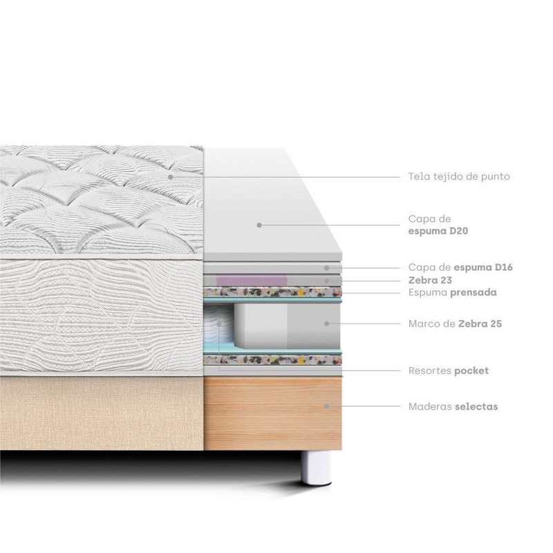 Cama Pocket Max 2 Plazas Champagne