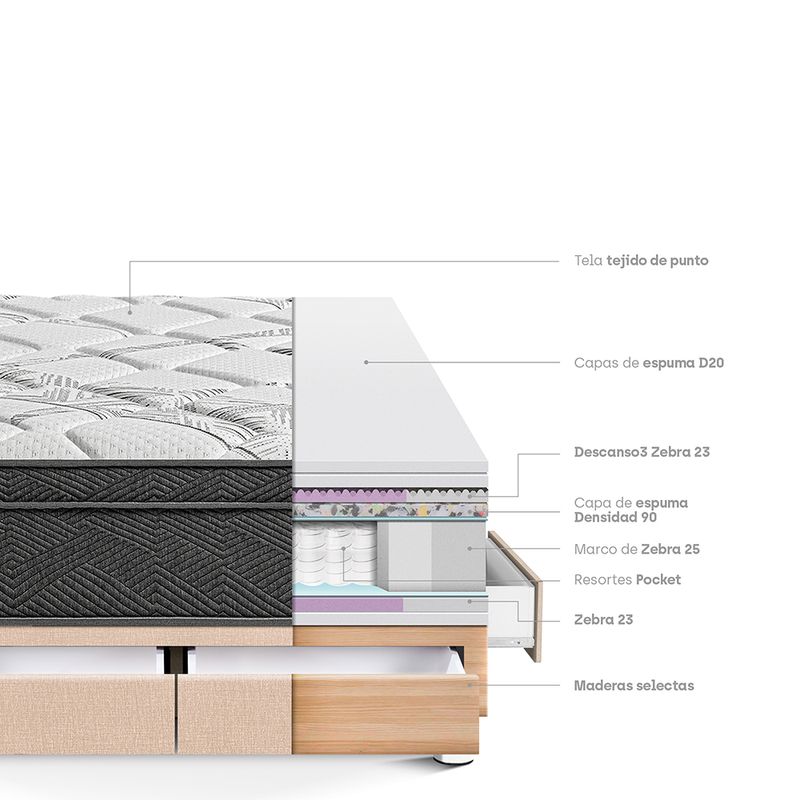 Cama Pocket Star Con Cajones King Champagne Paraiso