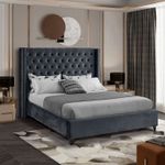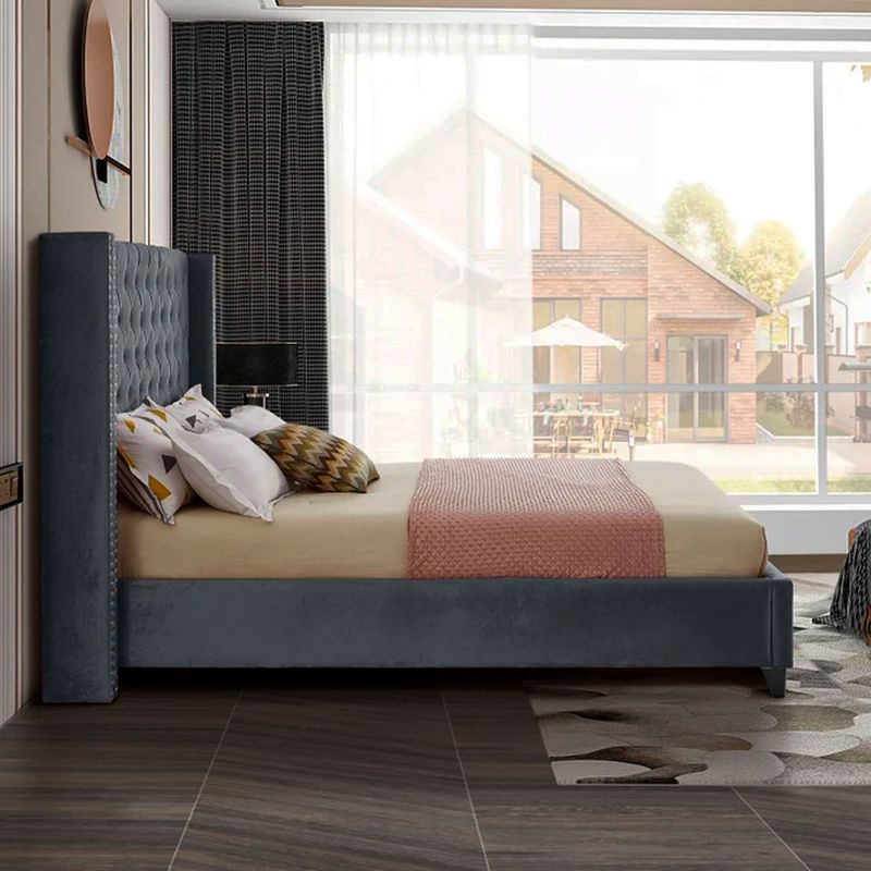 Nuestro Base de Cama Modelo Europeo está fabricado con madera shihuahuaco, roble y pino, en el interior tiene un recubrimiento de espuma blanca y está cuidadosamente tapizado en tela Iker, además viene con 4 patas de madera ya instaladas.