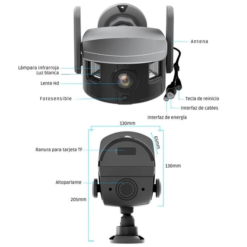 Cámara de Seguridad Exterior Panorámica Doble Lente 3MP HD Visión Nocturna
