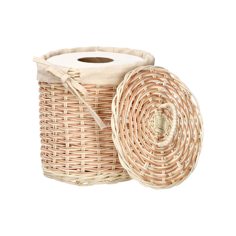 Canasto porta rollos de papel higiénico de ratan con tapa