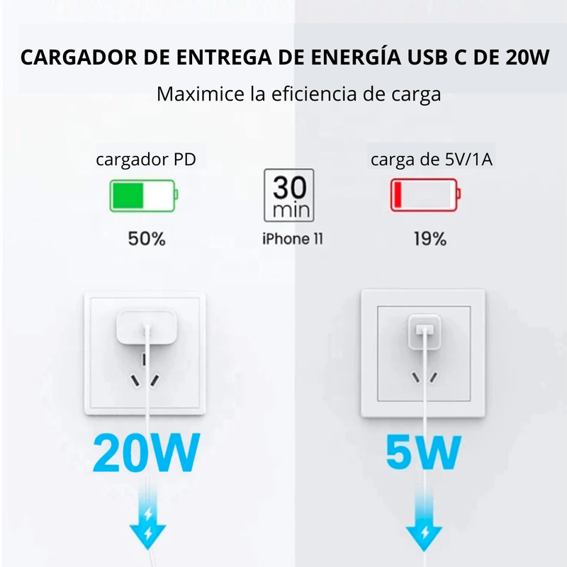 - Carga Rápida: Olvídate de esperar horas. Con 20W de potencia, tu dispositivo estará listo en un abrir y cerrar de ojos.