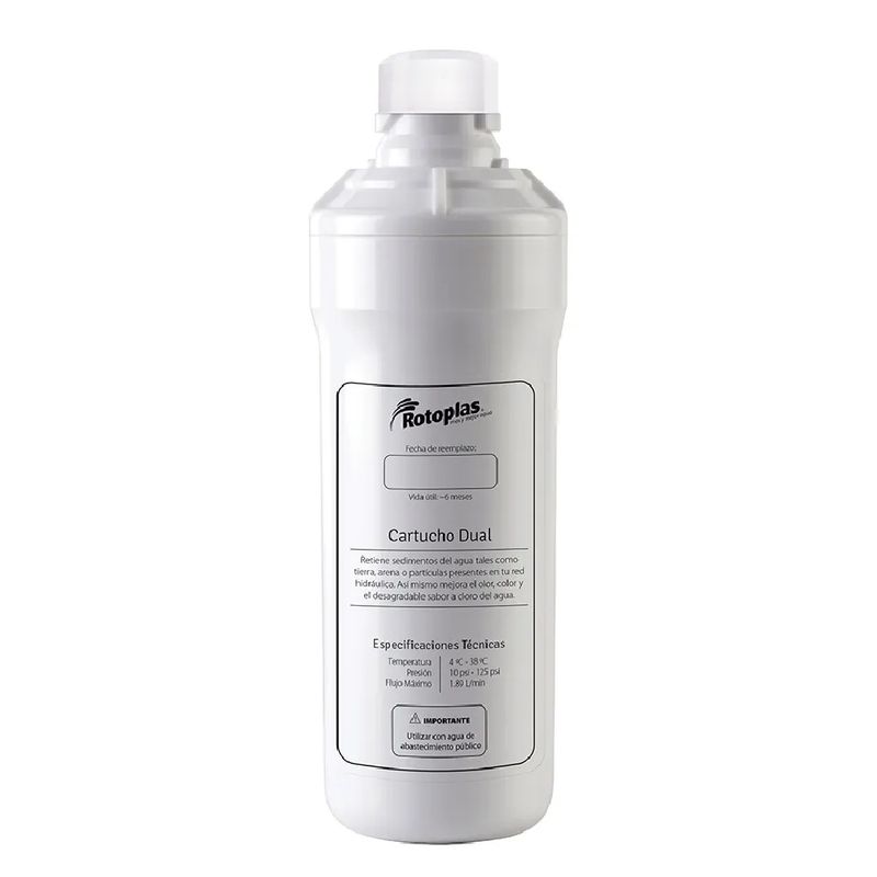 Optimiza la calidad del agua que consumes diariamente con este cartucho de repuesto para purificador alcalinizador, diseñado para garantizar una filtración efectiva y saludable. Este cartucho actúa como una barrera física que retiene sedimentos comunes en la red hidráulica, tales como tierra, arena y partículas, evitando que lleguen a tu vaso o a tus alimentos. Además de su capacidad para eliminar impurezas sólidas, este filtro mejora notablemente el olor, el color y el sabor del agua, reduciendo eficazmente el sabor desagradable a cloro que suele presentarse en el agua potable de la red municipal. Su avanzada tecnología alcalinizadora contribuye a mantener un pH balanceado, ideal para un estilo de vida más saludable. El mantenimiento es sencillo: se recomienda reemplazar el cartucho cada 1200 litros de uso o cada 6 meses, lo que ocurra primero. Esto asegura un rendimiento óptimo del sistema de purificación, prolongando la vida útil del equipo y manteniendo los beneficios de una agua más limpia y saludable. Ideal para hogares, oficinas o espacios donde se prioriza el bienestar mediante el consumo de agua purificada y alcalina. Es importante tener en cuenta que este cartucho no incluye instalación.
