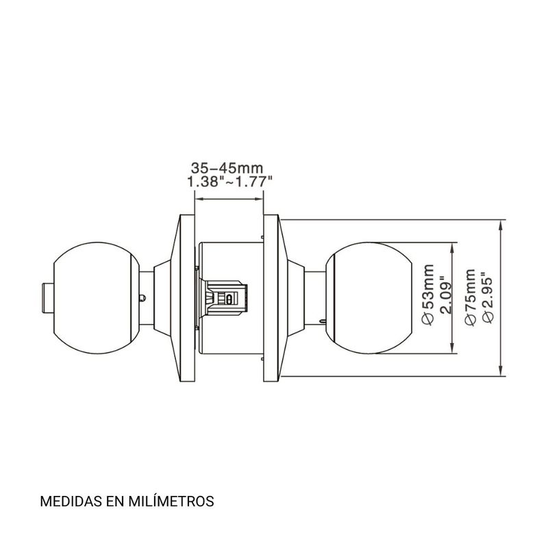 Incluye 5 llaves de 2mm Norma ANSI Roseta dde 75mm Para puertas de 35 a 45mm Con llave en el exterior y botón en el interior Garantía de por vida