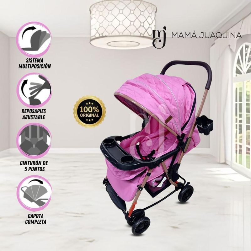 Coche Cuna Mecedora «Seulgi» El Coche Cuna Mecedora «Seulgi» está diseñado para brindar comodidad, seguridad y funcionalidad en cada paseo. Es el compañero perfecto para los primeros años de tu pequeño, combinando un diseño práctico con características avanzadas que se adaptan a cada momento del día. Características destacadas: Mango ajustable y reversible: Se adapta a tu altura y permite cambiar la orientación del coche para mayor comodidad y contacto visual con tu bebé. Coche cuna mecedora: Funciona como coche, cuna o mecedora, proporcionando versatilidad en el cuidado del bebé. 3 posiciones de reclinado: Desde sentado hasta acostado, se ajusta a las necesidades de descanso o exploración de tu pequeño. Bandeja desmontable y posapiés ajustable: Ofrece practicidad para la alimentación y confort adicional con cubrepiés incluido. Cinturón de seguridad de 5 puntos: Garantiza la máxima protección para tu bebé durante cada trayecto. 6 ruedas con frenos y amortiguación delantera: Proporciona estabilidad, control y suavidad en terrenos irregulares. Amplia canastilla: perfecto para llevar los esenciales de tu bebé y mantener todo organizado. Tela desmontable y lavable: Facilita la limpieza y el mantenimiento del coche, manteniéndolo siempre como . Asiento acolchado: Diseñado para brindar el máximo confort en cada paseo. Con el Coche Cuna Mecedora «Seulgi», tendrás un producto versátil y cómodo que acompaña el crecimiento de tu bebé. Sus múltiples funcionalidades, desde el mango reversible hasta la opción de mecedora, lo convierten en una excelente inversión para el bienestar de tu pequeño. Haz que cada paseo sea inolvidable con el Coche Cuna Mecedora «Seulgi», la combinación perfecta de diseño y practicidad. perfecto para padres que buscan seguridad, estilo y comodidad en un solo producto.