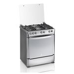 Sus parrillas de hierro fundido, tiene un encendido eléctrico en quemadores y horno proporcionándote una mayor seguridad evitando accidentes, tiene un timer mecánico para regular el tiempo de cocción de tus alimentos, tiene un sistema corta gas, un termocontrol. Para una mejor visualización en el horno cuenta con una luz en su interior, tiene la función grill, incluye una parrilla fija, en la puerta posee un vidrio panorámico.